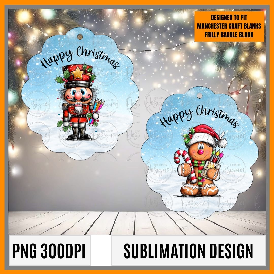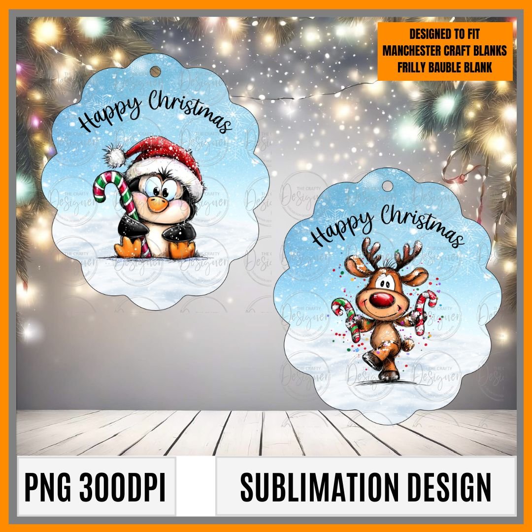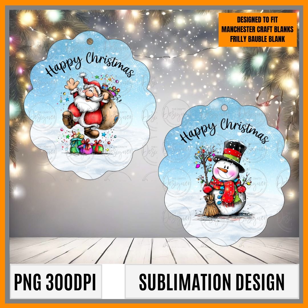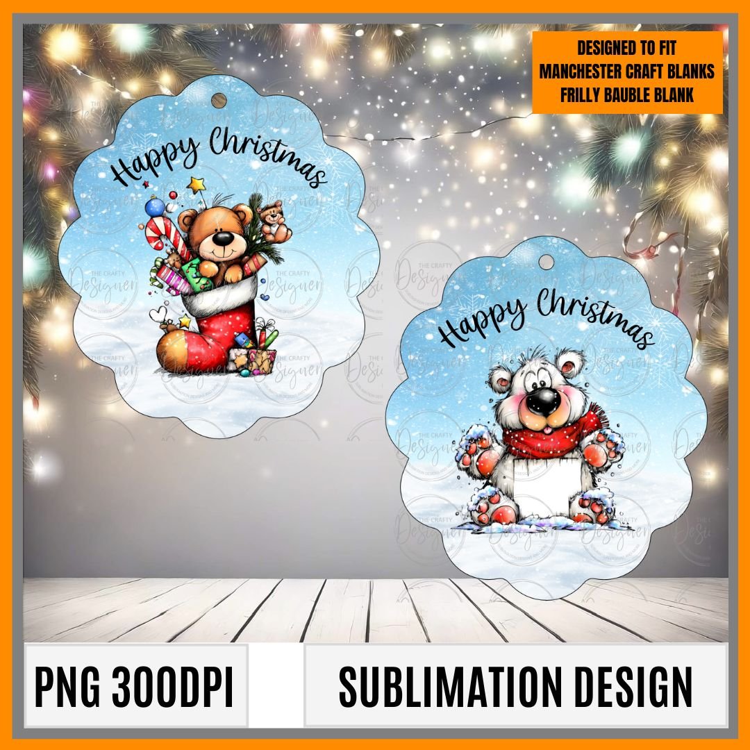 The designs should open the correct size if used in affinity designer but depending on your software you may need to resize to fit. Please note we make our designs 2mm bigger than the blank to help with lining up when pressing. If using the design for the frilly bauble without the frame you will need to resize the design to 79.7mm x 90.4mm so it will fit.